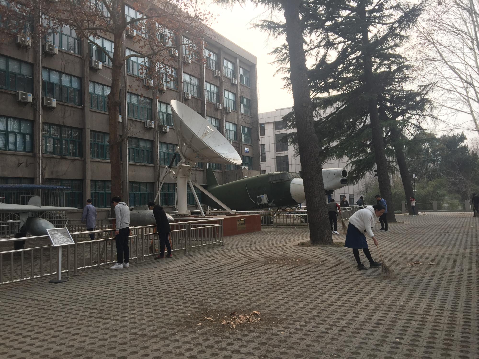 学生党员们在约定的时间齐动手,热火朝天地开始了打扫工作。15级硕士第一、第二党支部的同学们联合完成了学院北侧“停机坪”的清扫工作,清理了飞机下方、机翼上一些平时易忽略的地方掉落的树叶、树枝,并将草坪上的枯叶扫成小堆,16级硕士第一、第二党支部分别清理了教一楼东侧外围、南侧外围和西侧外围区域,他们不但清扫了路面,还认真地将花坛里掉落的树叶和杂物一点一点捡了出来。三个博士支部带领支部成员联同研究生工作室成员一同清扫了教一楼五楼研究生工作室内的卫生。