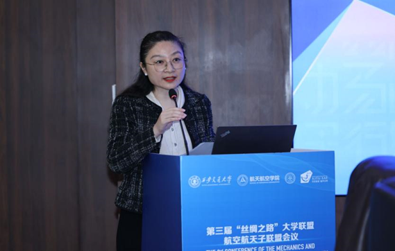 西安交大国际处副处长邹郝晶致辞。她首先代表国际处向嘉宾到来表示热烈欢迎,介绍了丝绸之路大学联盟的宗旨、目标及愿景。她指出,航空航天子联盟作为丝绸之路大学联盟最活跃单位之一,近年来在推动人才培养、国际科研合作等方面取得了积极成效。最后预祝会议圆满成功,期待以此为契机,推动联盟建设再上新台阶。
