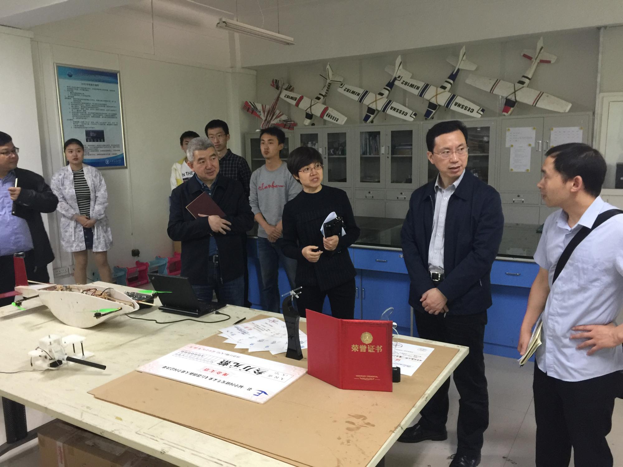 力学国家级实验教学示范中心涵盖了包括基础力学实验室、专业实验室及创新实验室等约十余个实验室及一个智能飞行器俱乐部。郑校长一行仔细询问了各实验室投入与建设,本科生教学、实验室的利用率等情况,细致入微地查看了卫生状况及实验室内外环境。